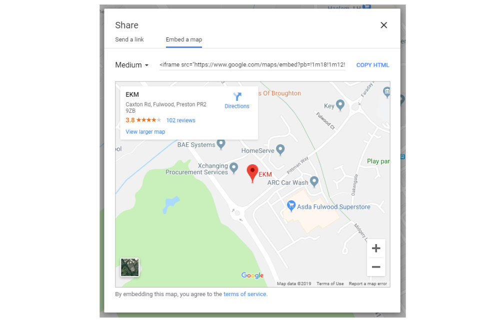 You’ll also need to include your physical store address if you have one, or multiple, including directions and a map which you can embed from Google. Simply find your premises on Google maps, click the ‘Share’ icon and choose ‘embed a map’ – the iframe code you see can be inserted into your website to display your physical store location. You’ll also need to include your opening hours.