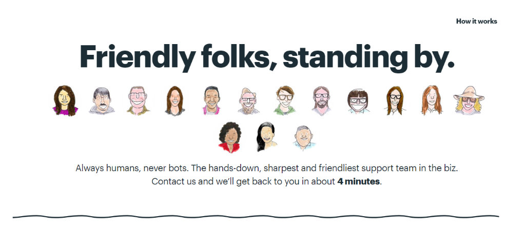 “My experience has also taught me that customers respond well to happy faces. By including the faces of your support team, you are showing your customers that there are real humans on the other side of the page. This will give them confidence in your support and generate a more relaxed interaction between you and the customer.”