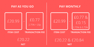 WorldPay has two simple options when it comes to their fees – a pay as you go plan and pay monthly plan. What you choose will depend upon the nature of your business but below are some examples for each. Please note that on the pay monthly plan there are two different fees for credit and debit cards.