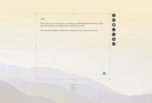 OmmWriter is a tool that helps you concentrate on writing, eliminating all other distractions from your computer screen, in a natural light setting. Using tools and methods to aid concentration such as natural backgrounds, focusing audio tracks and sound from typing.
