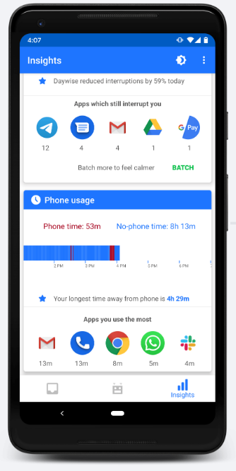 According to ventureharbour.com 22% of people working from home struggle to switch off and unplug after work. Apps like Day Wise can help you not only manage your notifications by having them delivered to you at particular points throughout your day but it also monitors your phone activity.