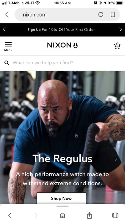 Not only did Nixon's desktop site win the Webby’s eCommerce website of the year, but the mobile version is also a beautiful piece of design. With a minimal color palette, crisp visuals, and helpful icons, the path to purchase is quick and easy. Additionally, the photography helps to enhance the brand, establishing a lifestyle around Nixon.