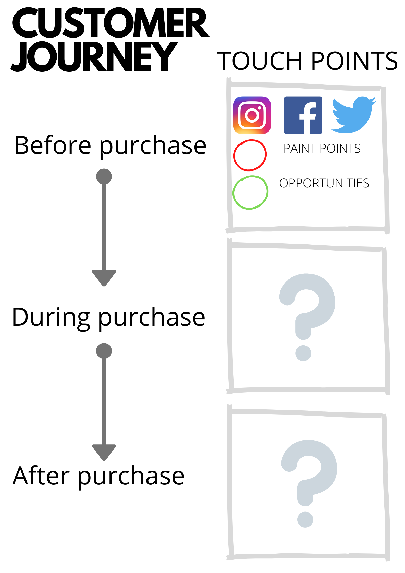 Having identified your customers, it is best to plan out a customer journey map. This will help you to visualise the process and allow you to understand every experience the customer will have with your brand – Pre-purchase, during the purchase and post-purchase. Find out pain points and the touchpoints they have with your business. These touchpoints represent where your customers are reachable and can be influenced by your marketing strategy.
