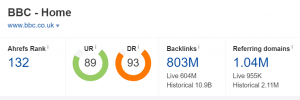 It is widely believed that external links are a very important source in ranking power and this is because different websites carry different weights, or domain authority. The more weight a website has, the higher their domain authority will be. For example the BBC’s domain authority is 93 at the time of writing and has over 1M other websites linking to their domain.