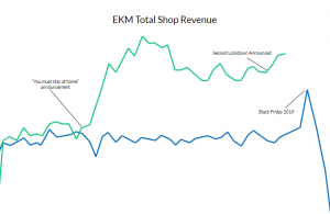 As lockdown restrictions eased this figure dropped but is still at a much higher percentage than ever seen before. And we can confirm this with our own statistics. We saw a 100% increase in online sales across our platform around the same time. The levels were much higher than the previous years’ Black Friday, which was the single biggest sales day of the year for our customers.