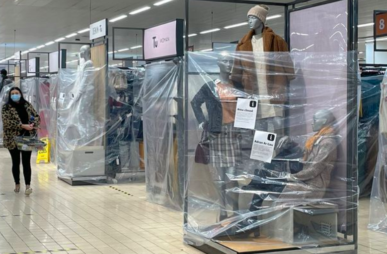 This means while stores like Tesco can sell food and other products deemed essential like toilet paper and alcohol, they are not allowed to sell items like clothing or games.